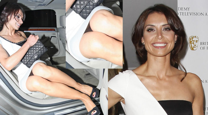 Christine Lampard in Upskirt - Getting out of the vehicle