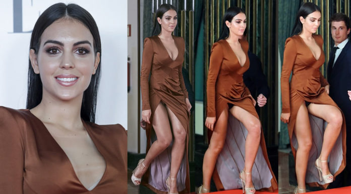Georgina Rodríguez in black panties upskirt - 'Elle' Gala, Madrid