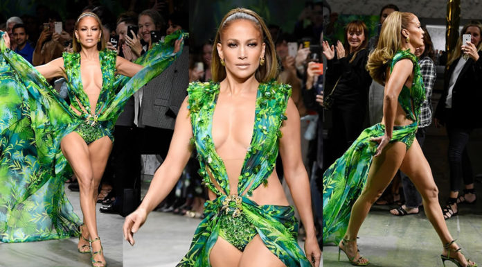 Jennifer Lopez in Upskirt at Versace Runway Show at Milan Fashion Week 092019