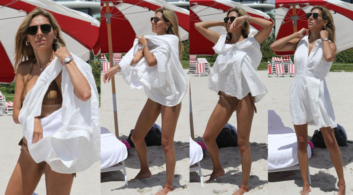 Eva Marcela upskirt – Spotted in a bikini in Miami Beach of LaLiga at Bein Sports