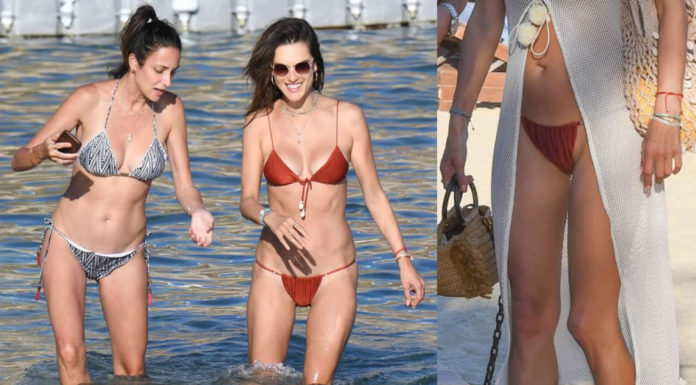 Alessandra Ambrosio bikini upskirt on the beach in Mykonos, 07132019