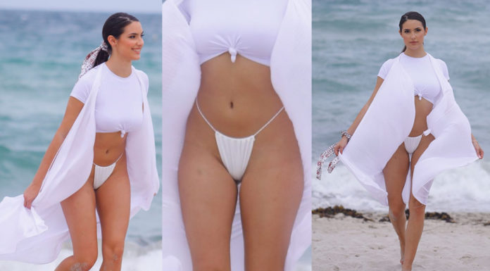 Tao Wickrath Upskirt - Wears a flowing white swimsuit on Miami Beach, 07242019