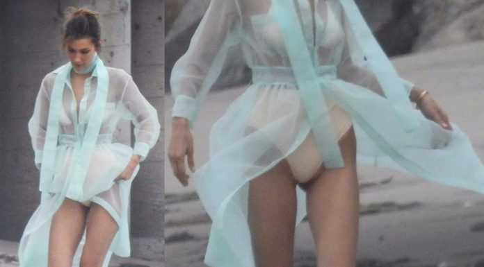 BELLA HADID Upskirt & See-Through a Photoshoot in Malibu 05132019