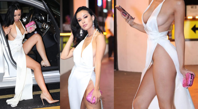 Demi Rose black panties upskirt - Sexy Fish restaurant in London