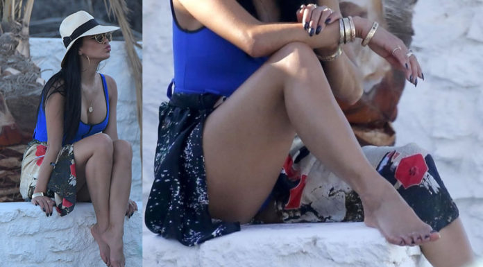 Nicole Scherzinger Upskirt - Blue Swimsuit in Mykonos