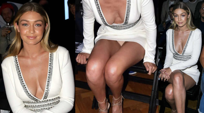 Gigi Hadid's Little White Pantie Peek - David Jones SpringSummer 2015 Fashion Launch Sydney August 5th 2015