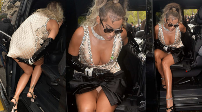 Rita Ora in Sexy Cleavage and Upskirt - Miu Miu Fashion Show in Paris