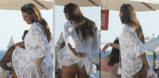 Natalya Wright upskirt ass at a beach club in Marbella celebrating...